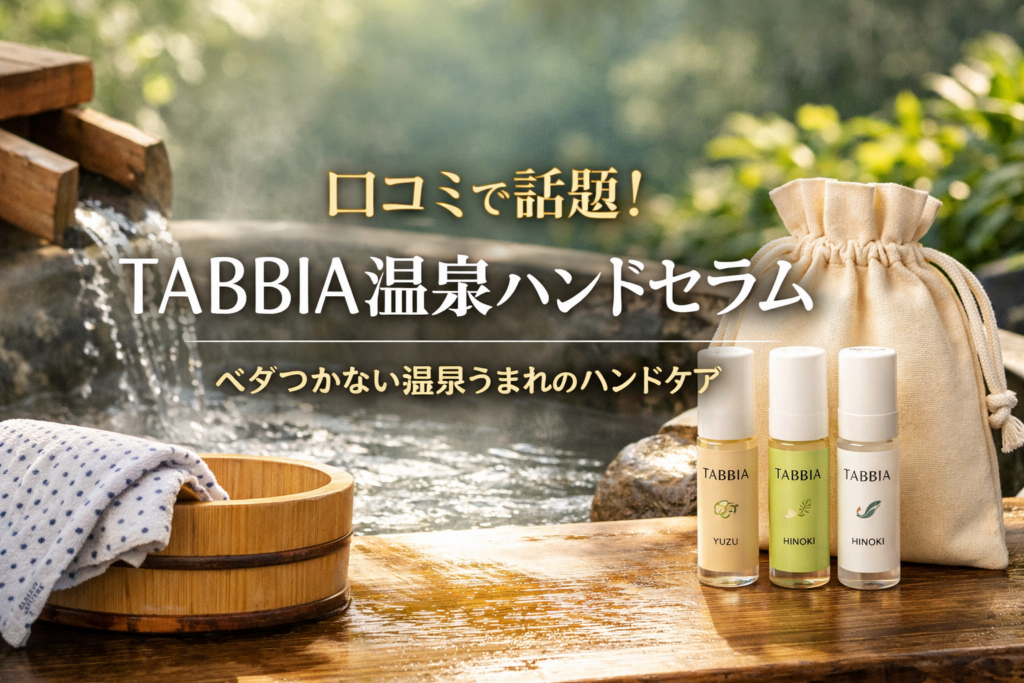 口コミで注目のTABBIA温泉ハンドセラムをやさしく解説。ベタつかない使用感や香り、榊原温泉の背景、ギフトに選ばれる理由、口コミ傾向までわかりやすく紹介します。 外出先で手の乾燥が気になるとき、ハンドクリームを塗ったあとにスマホがベタついたり、... -